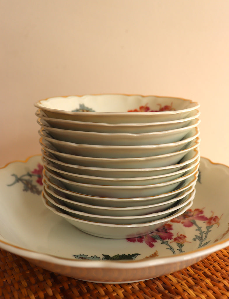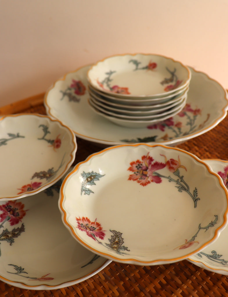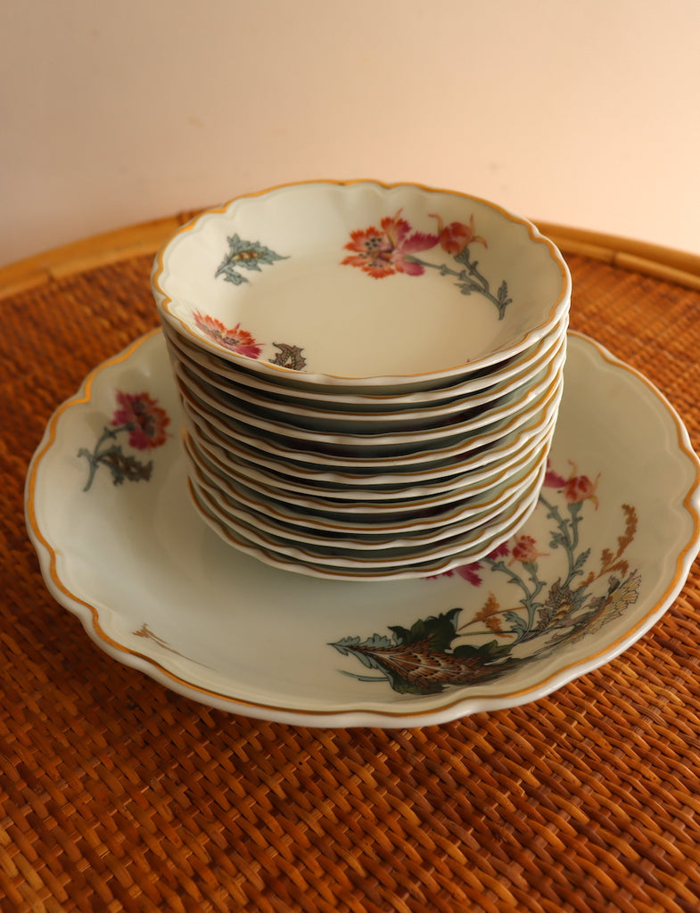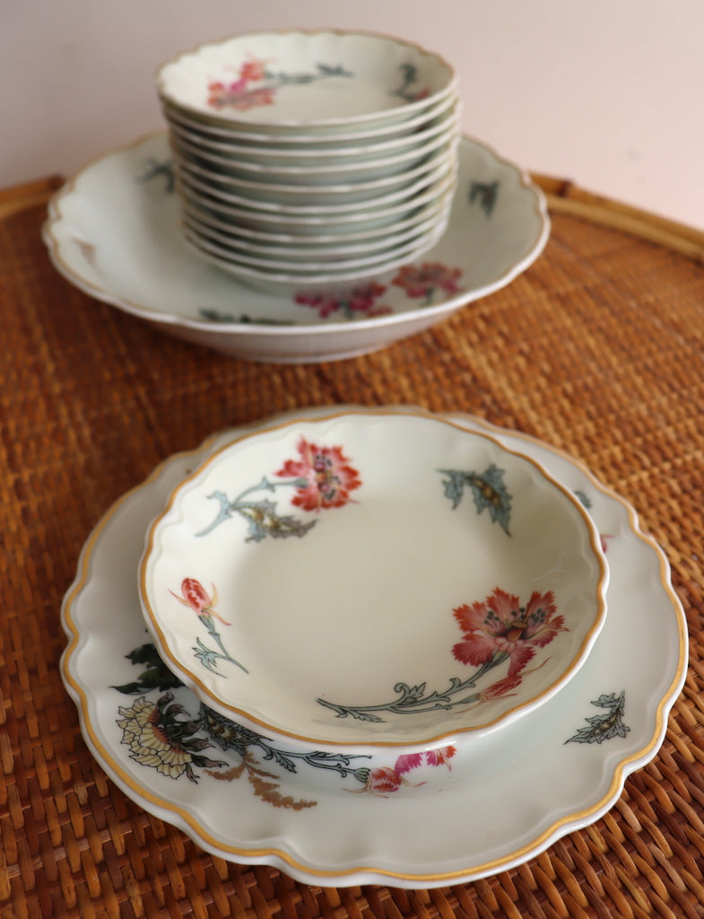 Ce Service à crème en porcelaine signée Haviland, modèle Choiseul décor oeillets,  comprend 13  pièces  :