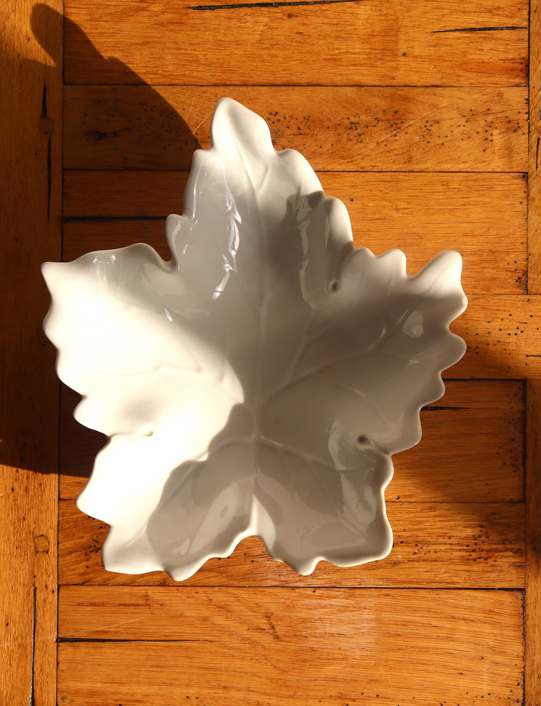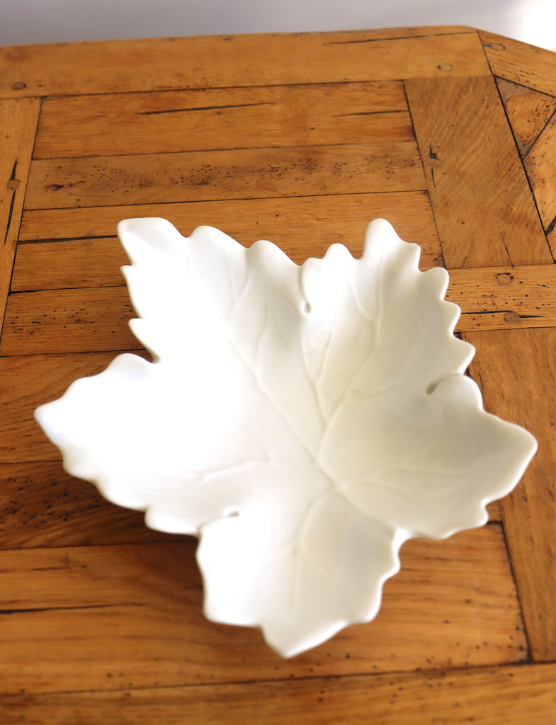 Voici en provenance du Portugal un joli vide-poche, ou réceptacle à bouchons, ou encore pour d'autres trésors, d'une très belle facture. La feuille de vigne ainsi stylisée montre ses nervures comme une feuille bien vivante.