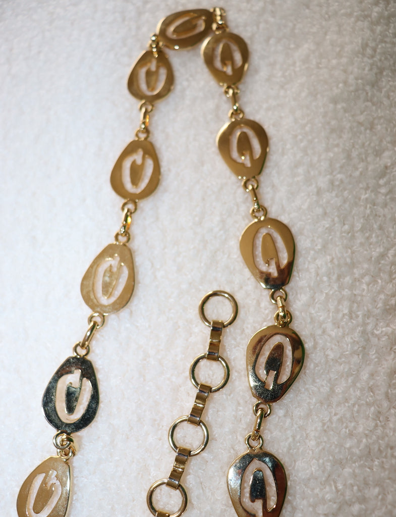 Pour sublimer une robe, une tunique : magnifique ceinture en métal doré. Elle s'ajuste en fonction de la manière dont vous la portez.