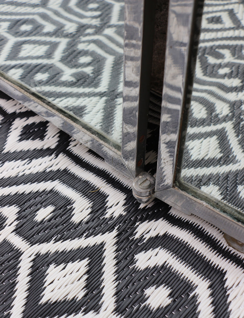 L'arrière de chaque vantail est recouvert de feutrine d'un côté mais fixé au mur cela devient invisible) ou d'un revêtement bleu de l'autre, qui protègent le dos des miroirs.