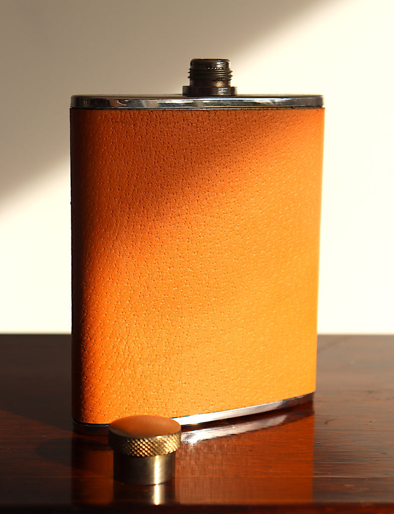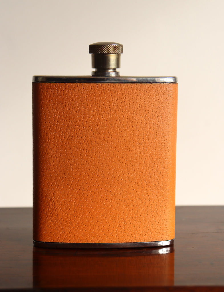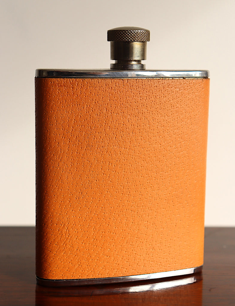 Cette flasque à alcool de 180ml est superbe. Elle est recouverte d'une protection  couleur marron clair.