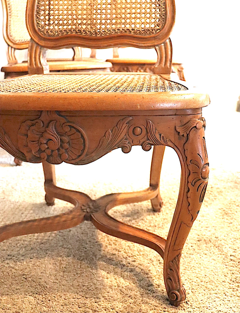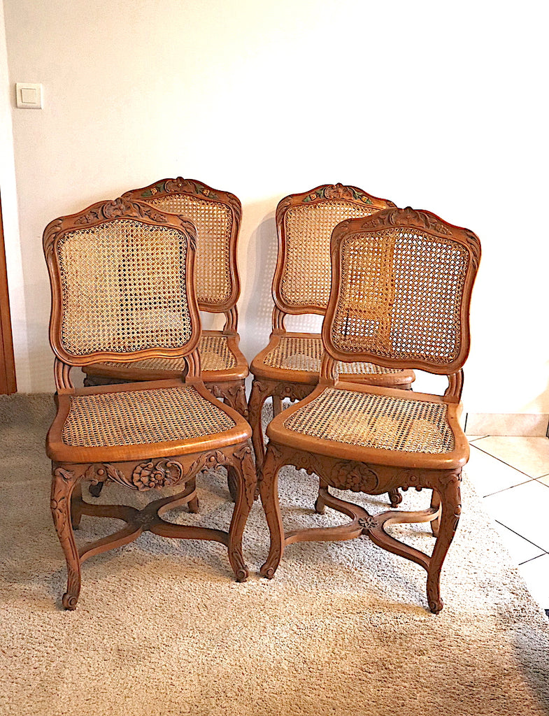 / Chaises Louis XV cannées en bois massif