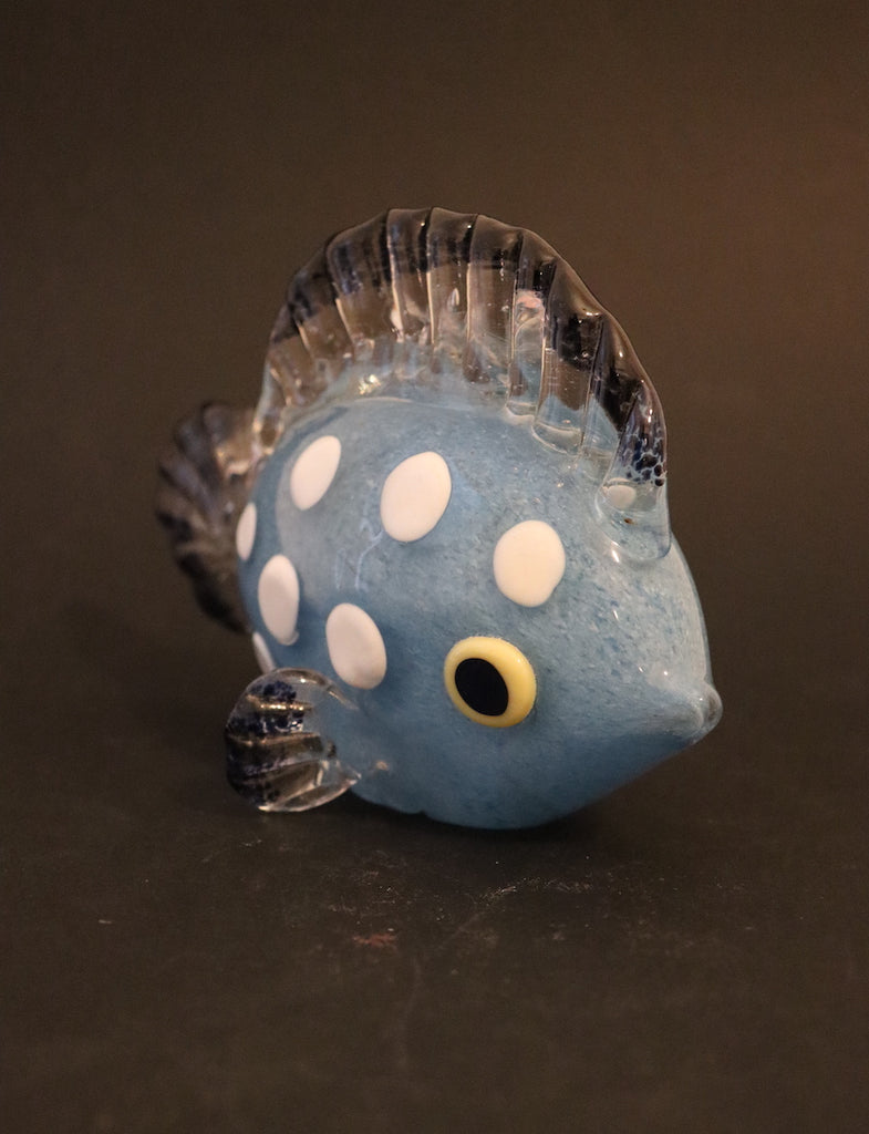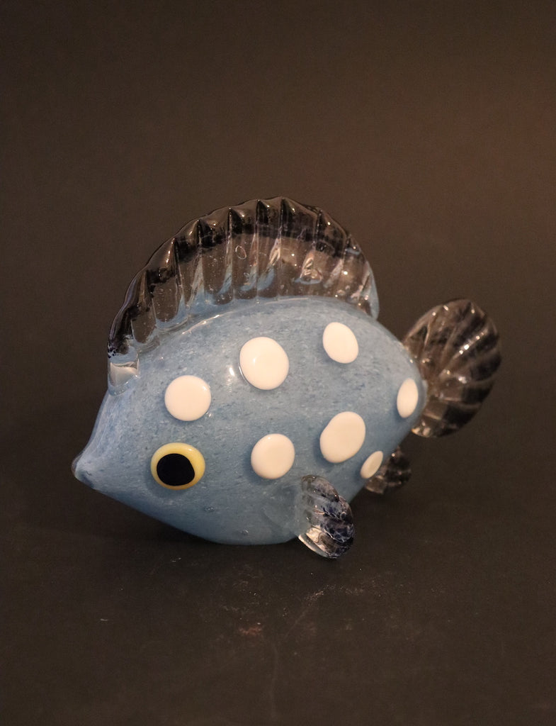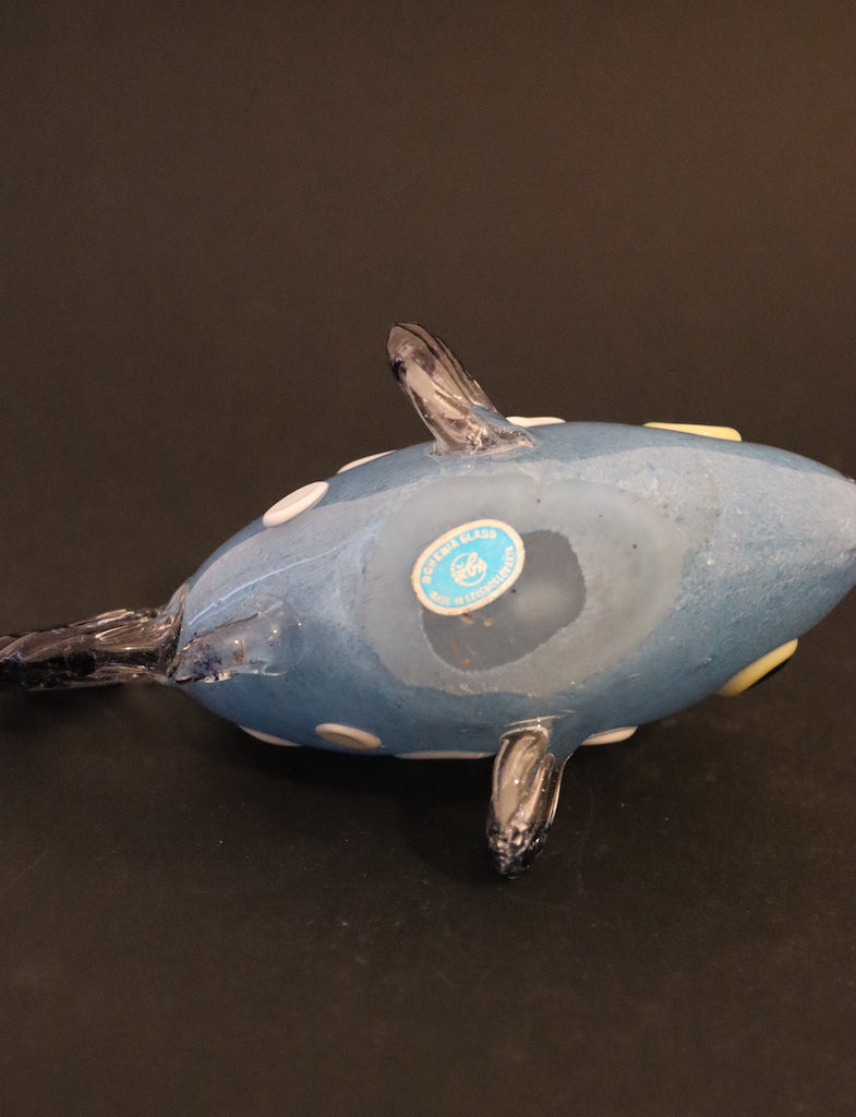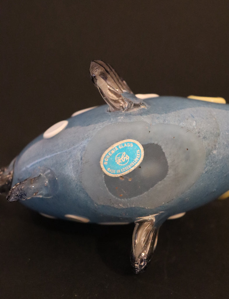 / Sculpture poisson bleu à poids blanc en cristal de Bohême