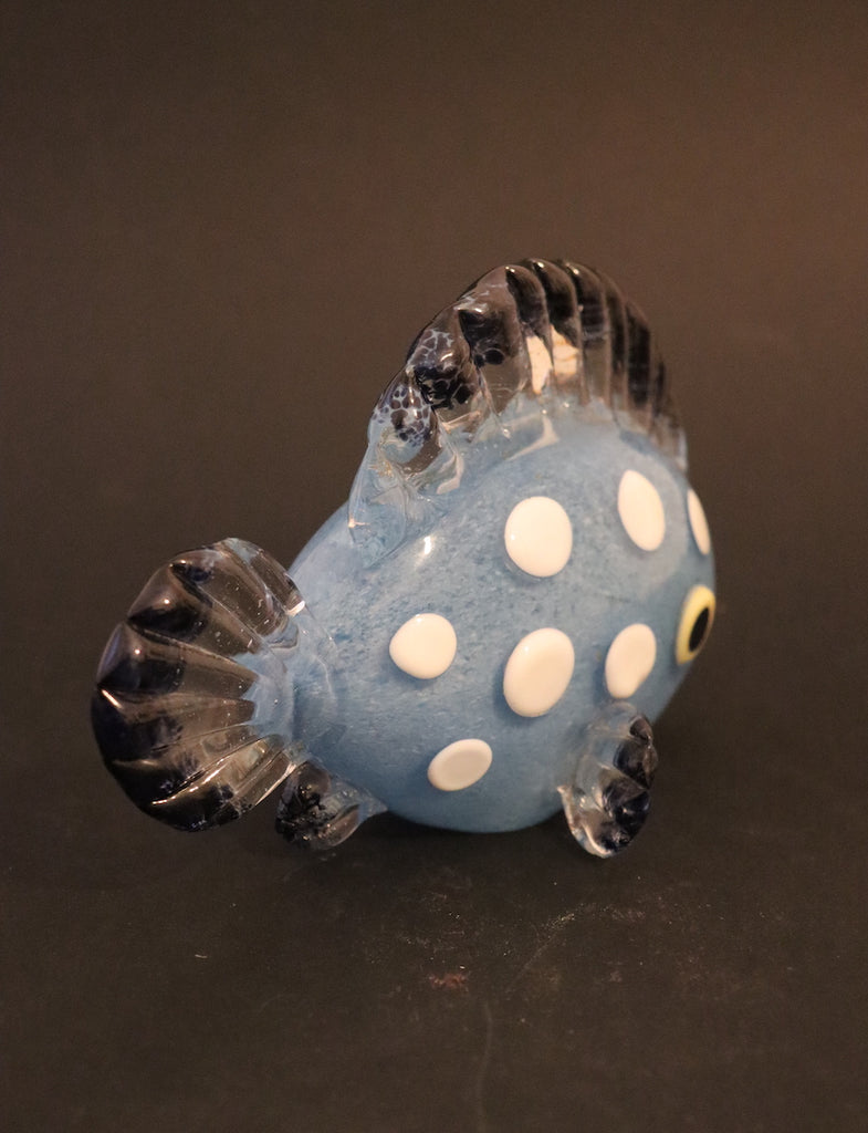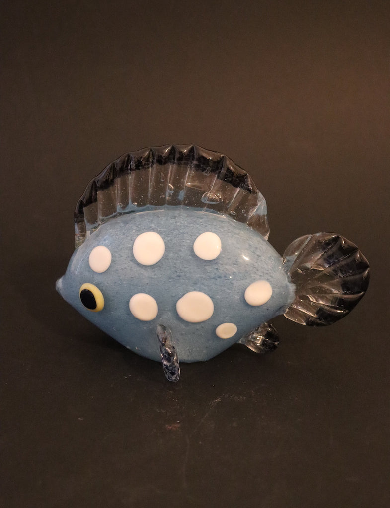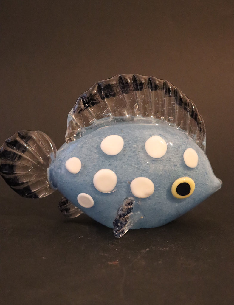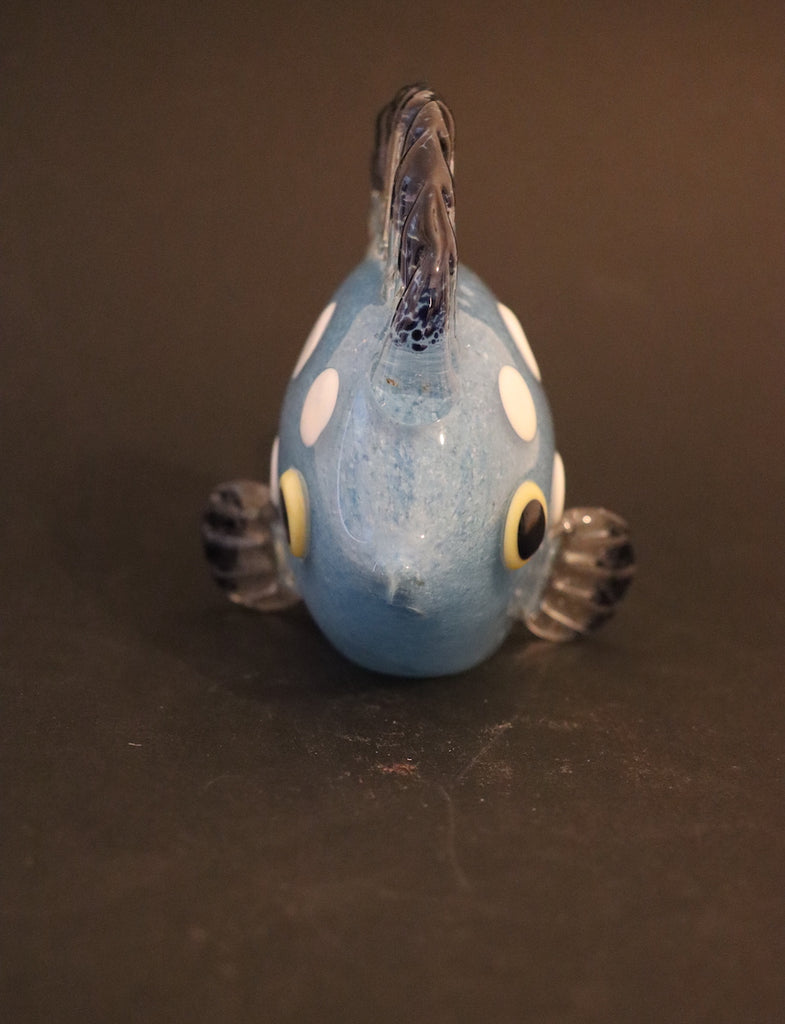 / Sculpture poisson bleu à poids blanc en cristal de Bohême