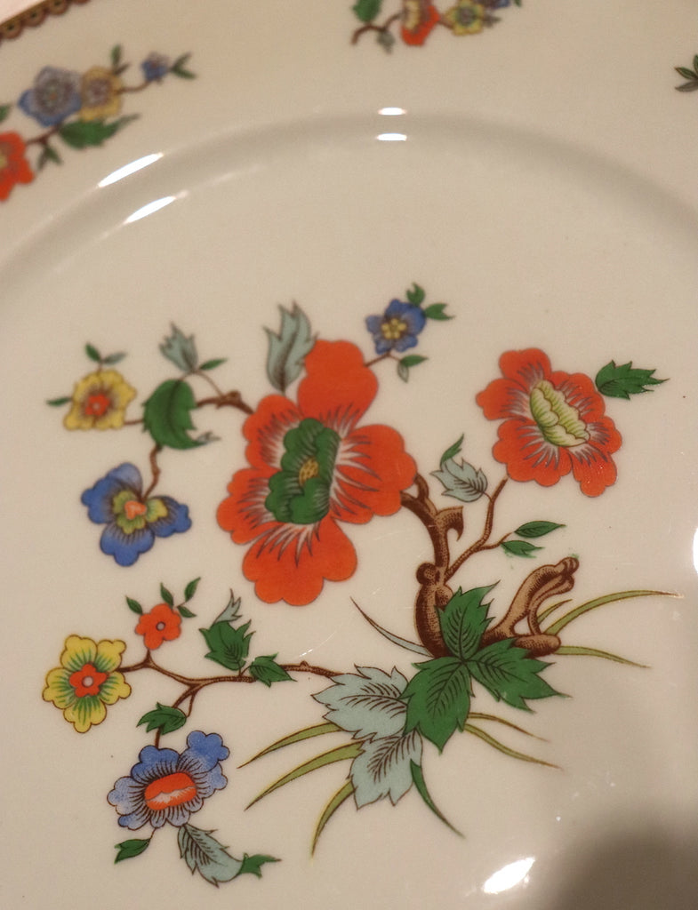 Ces éléments de service en porcelaine, d'un modèle "Vieux Chine", à décor de fleurs des Indes comme cela se faisait et se refait à nouveau.