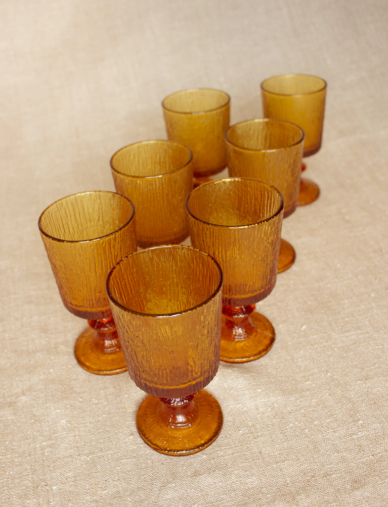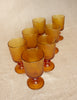 Lot de 7 verres à pied en verre moulé granité ambre.