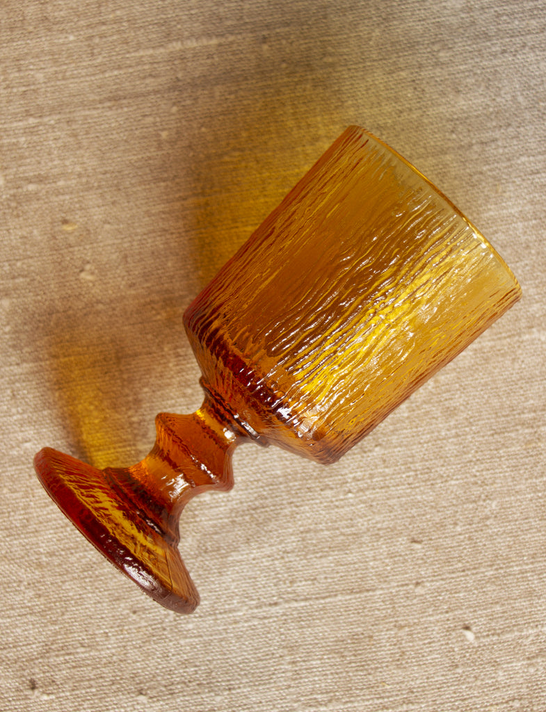 Verres à pied en verre moulé granité ambre