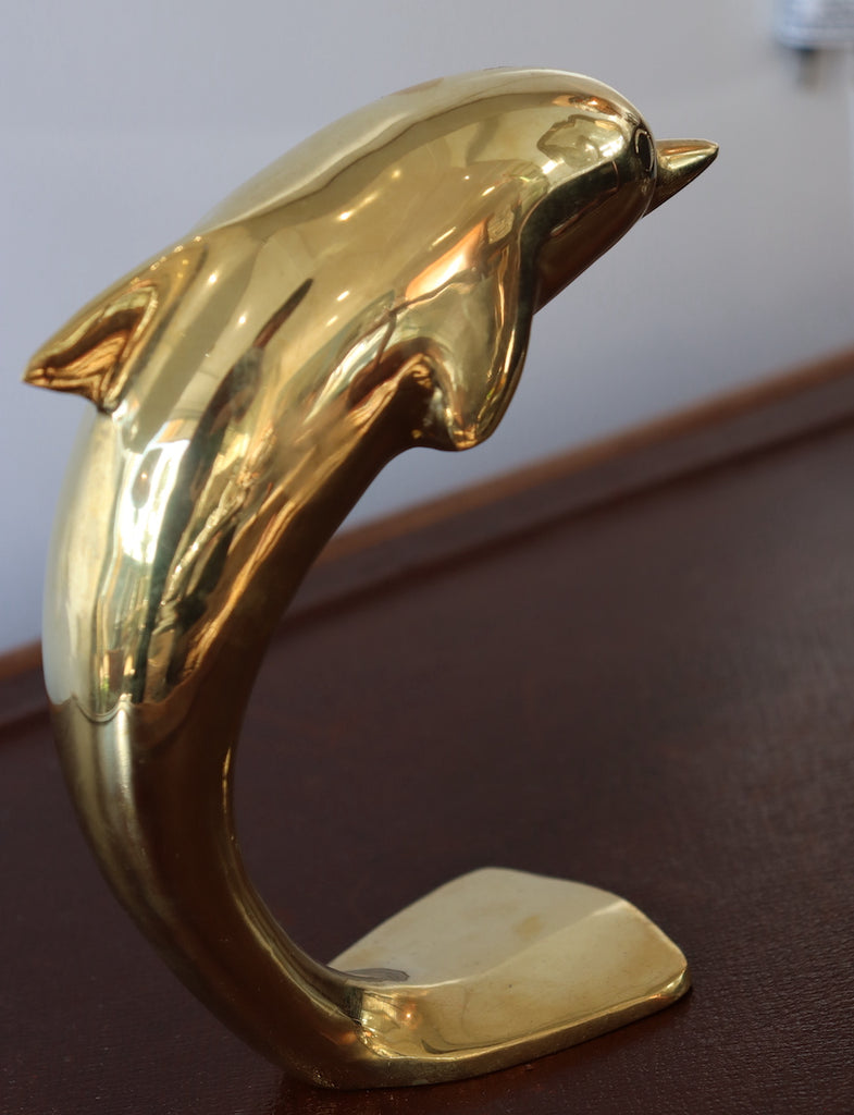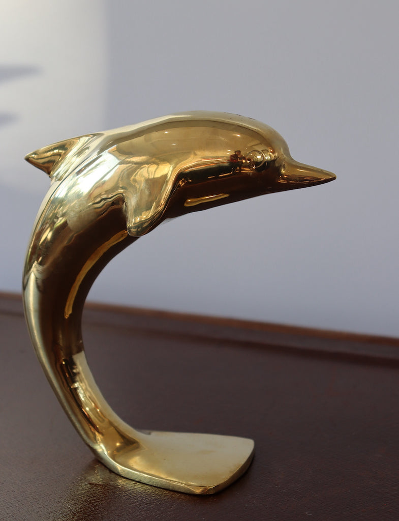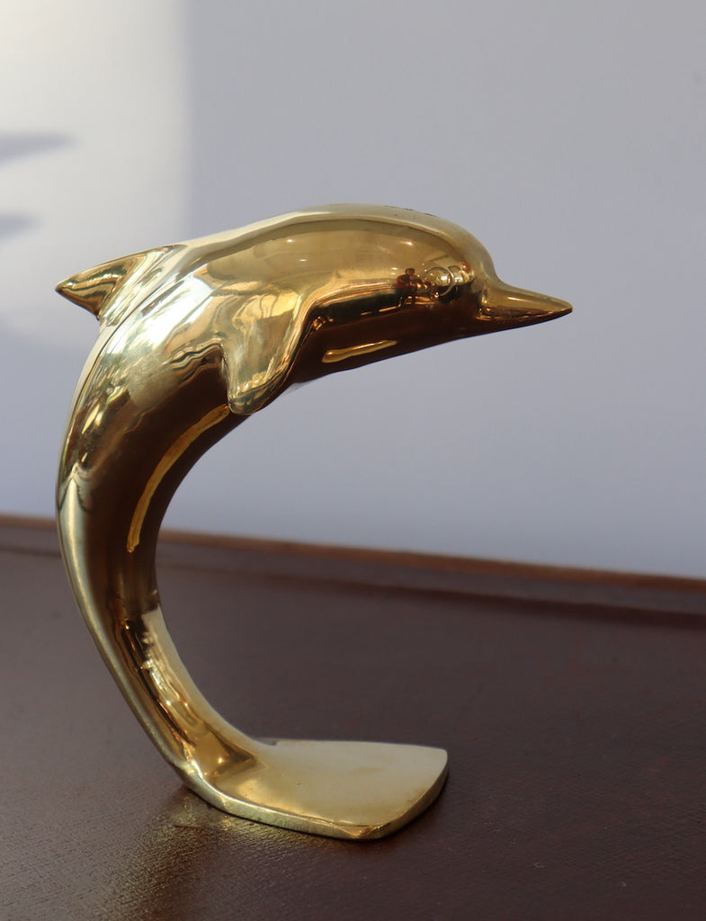 Voici un charmant dauphin en laiton, très bien dessiné. Idéal comme papier pressé d'un bon poids ou simplement comme objet de décoration.