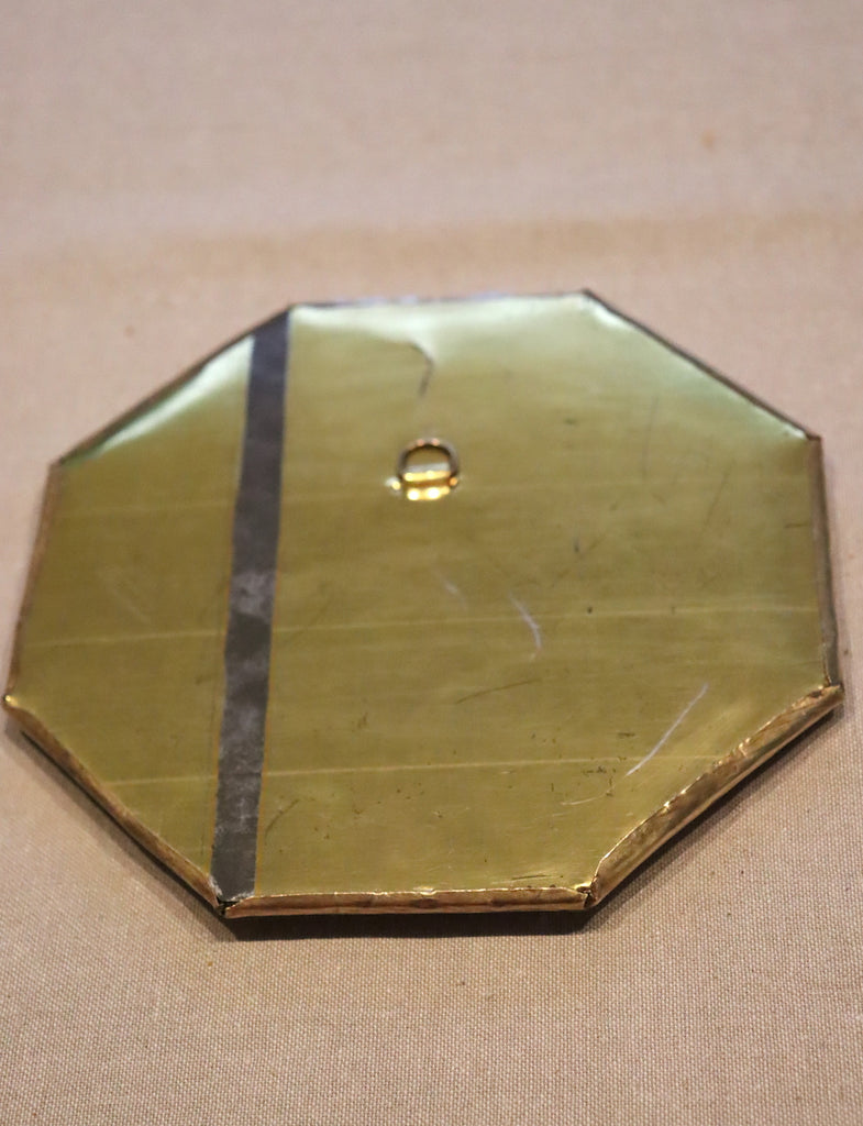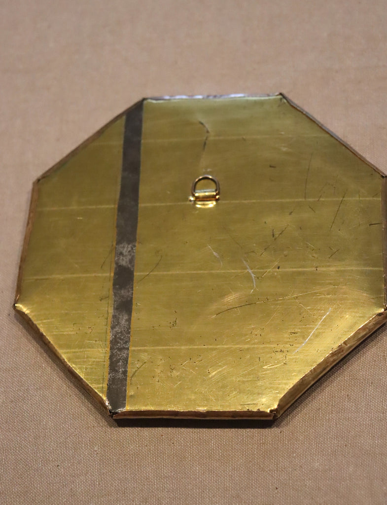 Matière : laiton et corne  ; quelques piqûres sur le miroir.