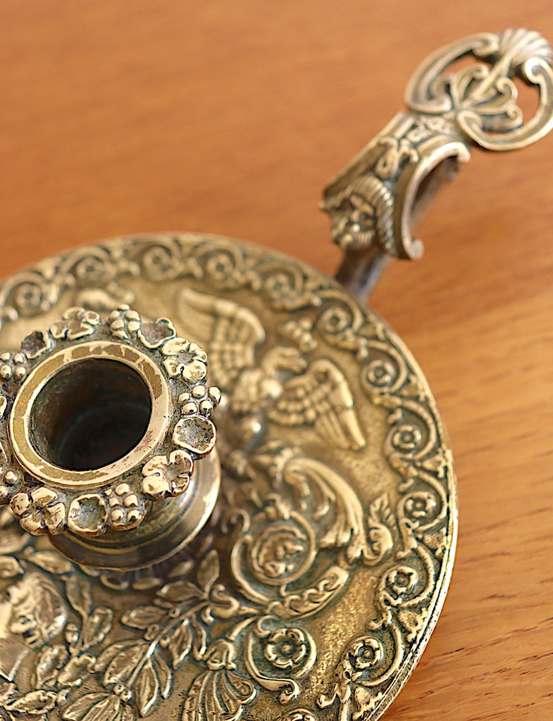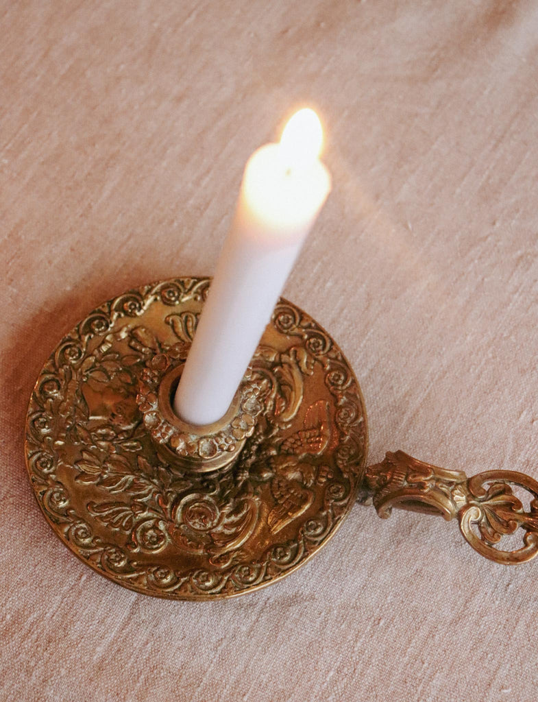 Ce modèle de petits bougeoirs permettait à l'origine, de s'éclairer pour descendre dans les caves, et vérifier si des gaz s'y dégageaient, et bien entendu pour connaître ainsi la maturation des vins.