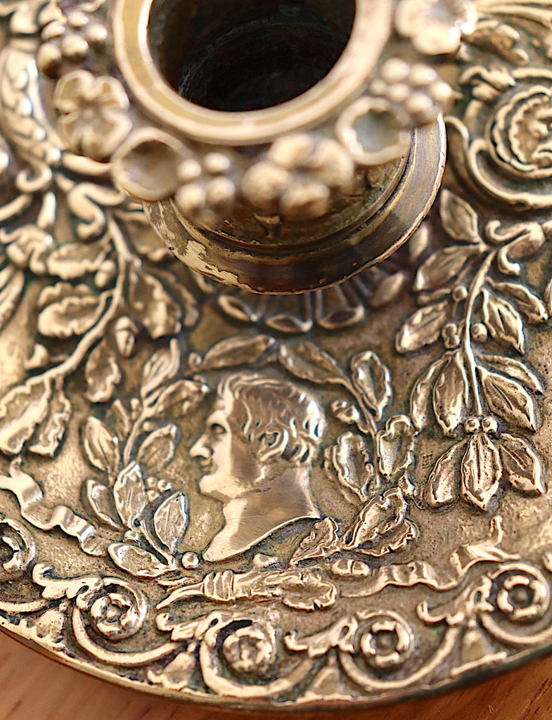 Ce modèle en bronze est très joli avec son décor de style Empire et son aigle impérial majestueux sur le socle, en écho à la figure de profil de l'Empereur lui-même.