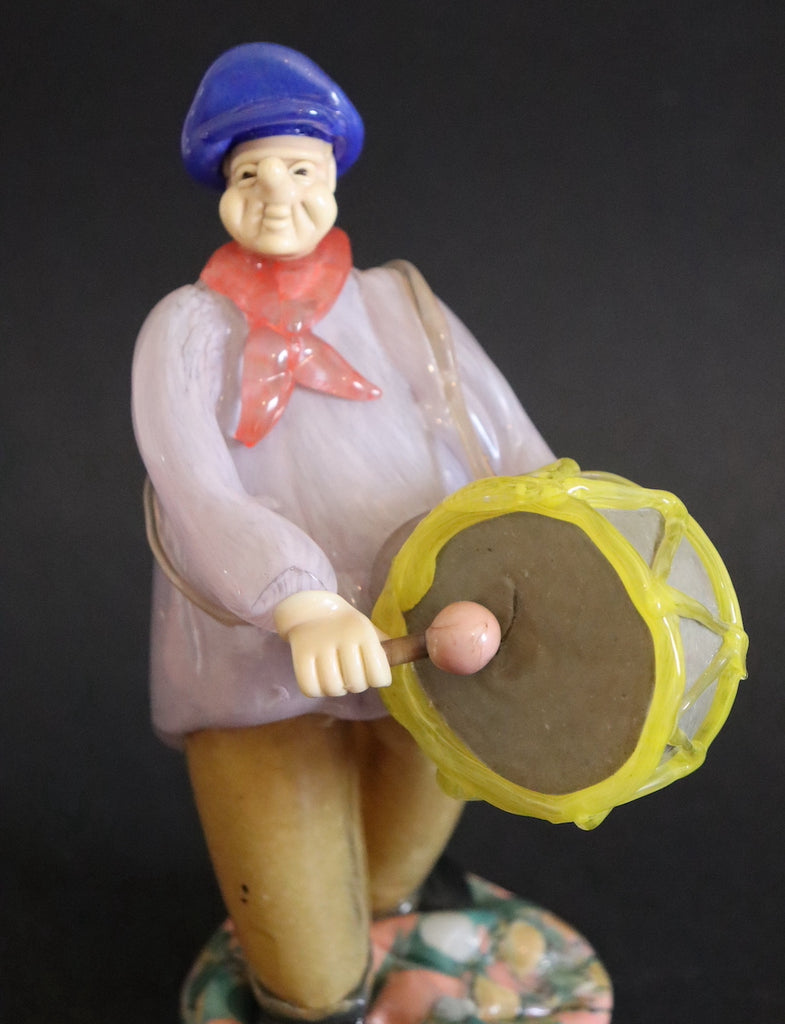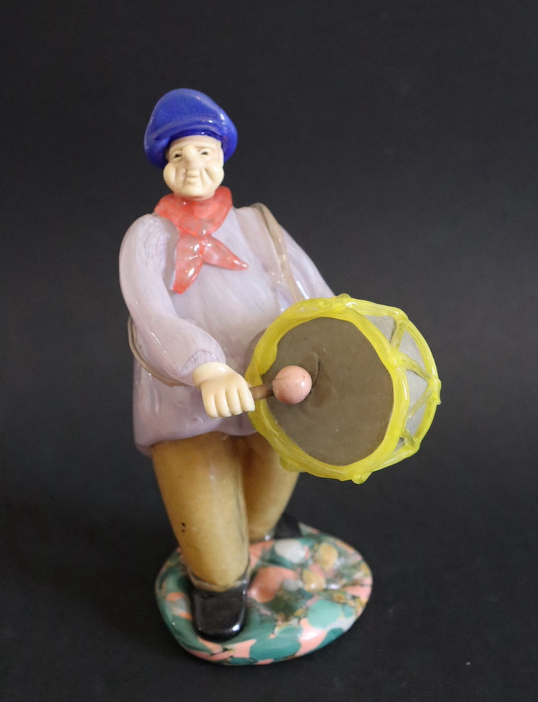 / Joueur de grosse caisse en verre de Tchécoslovaquie foulard rouge