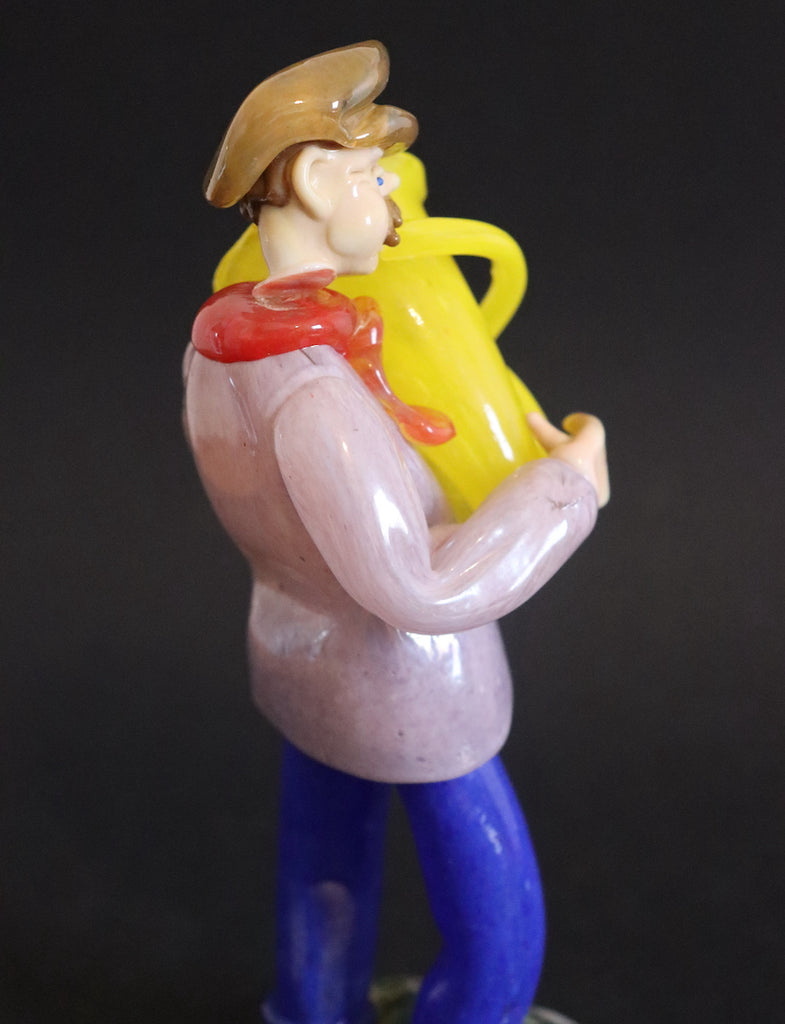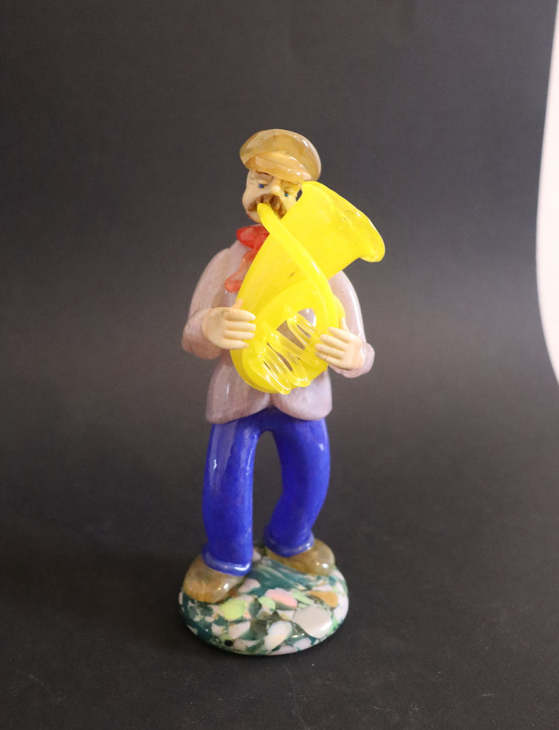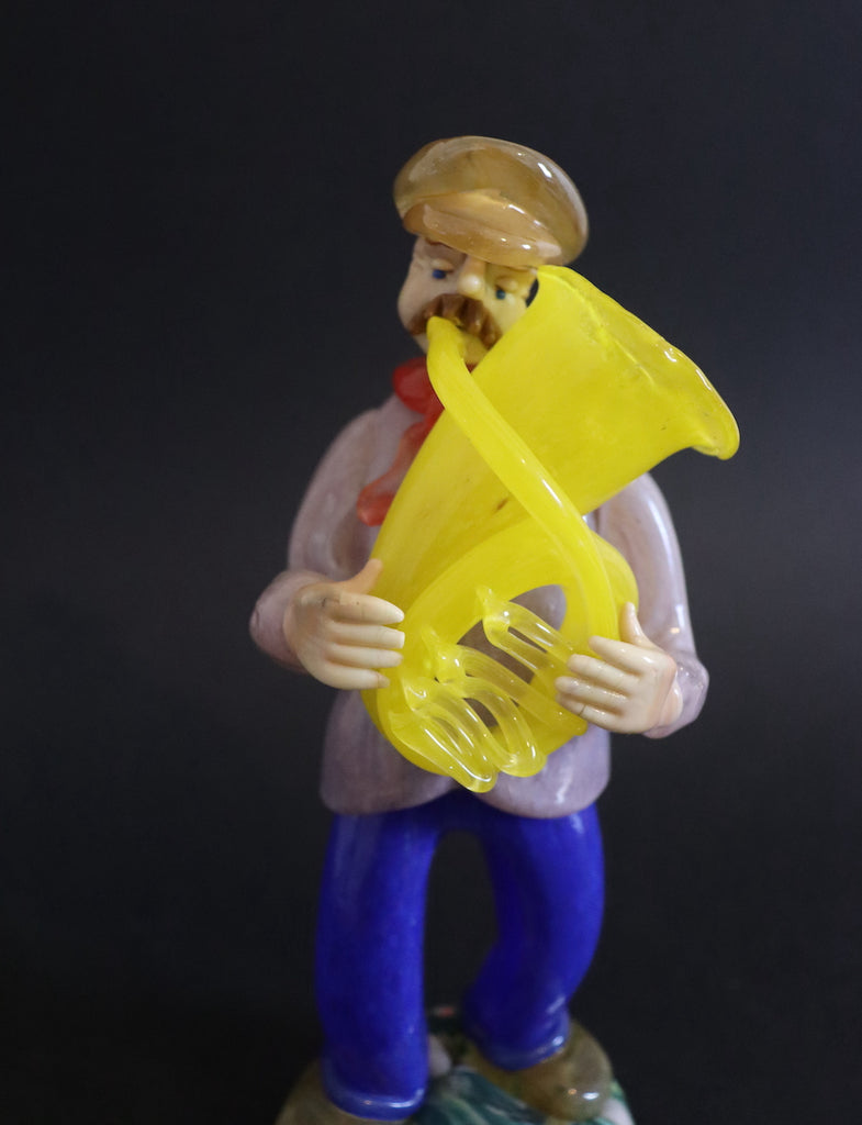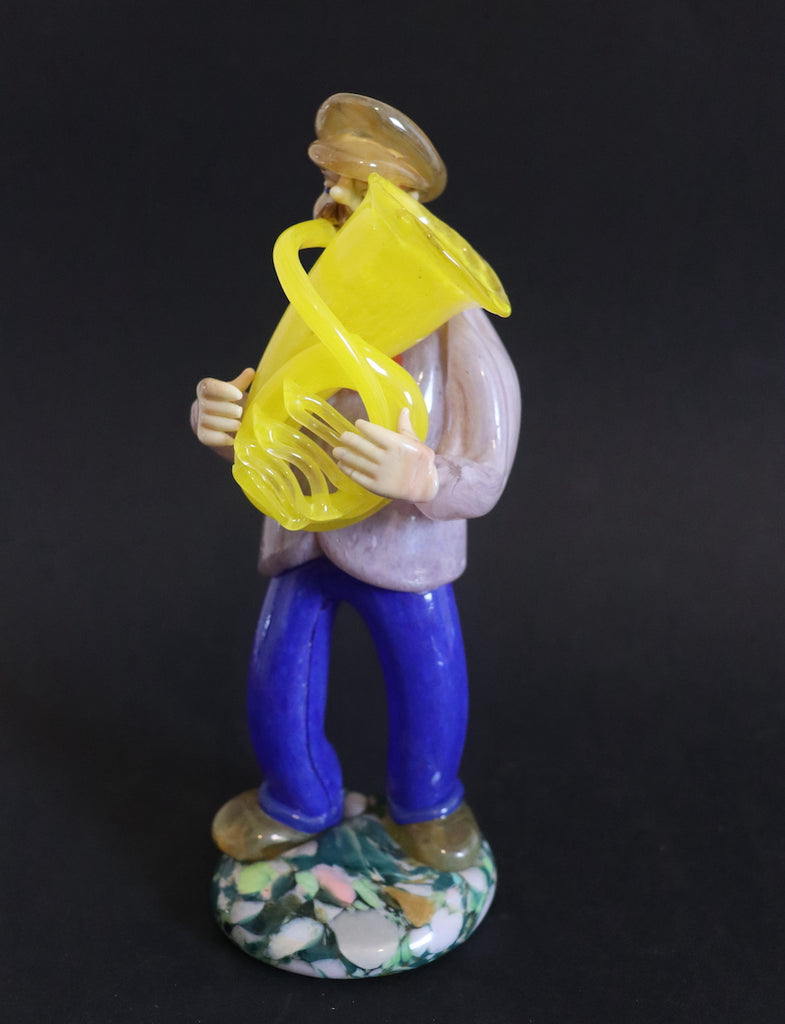/ Joueur de tuba jaune en verre de Tchécoslovaquie