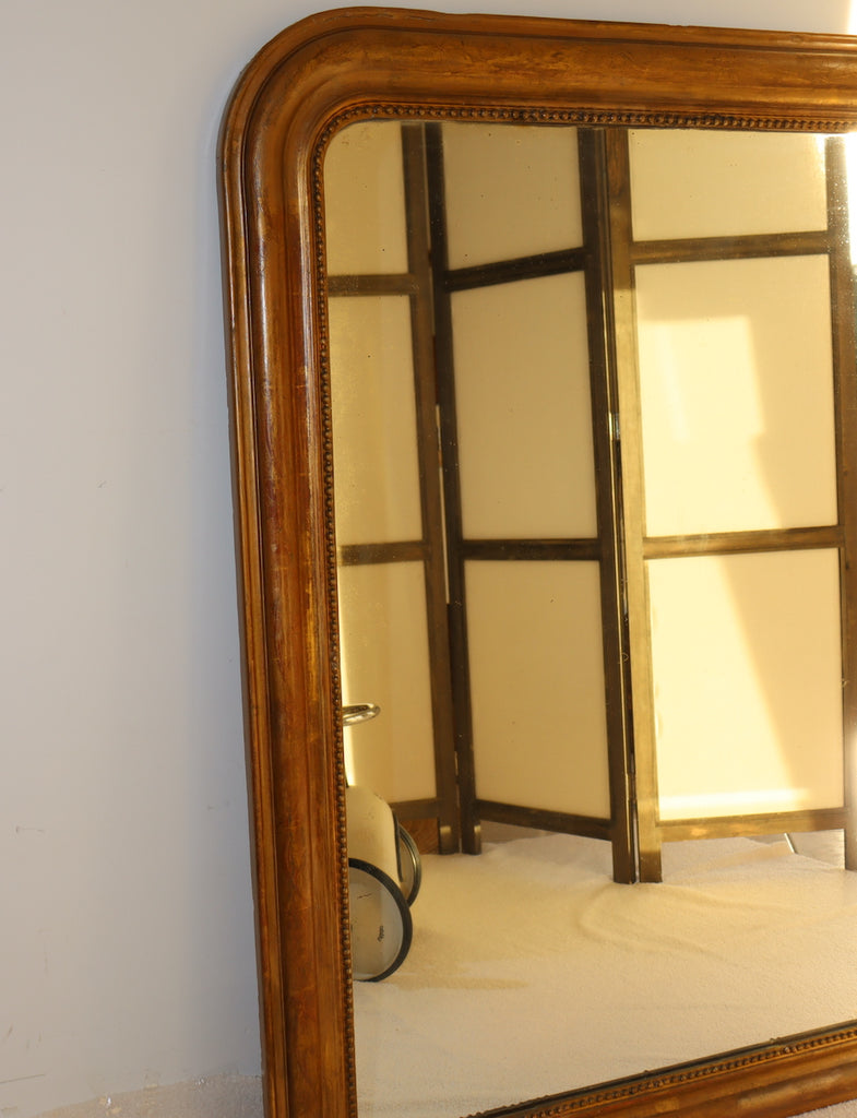 Voici un Miroir ancien de style Louis-Philippe aux dimensions étonnantes. Si on est plus habitués à trouver des Louis-Philippe élancés dans leur verticalité, celui-ci présente un équilibre de ses dimensions aussi rare que spécial.