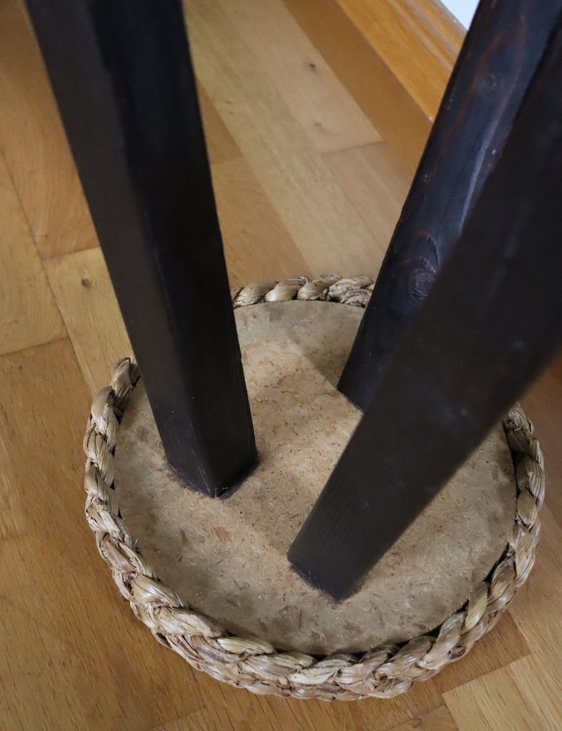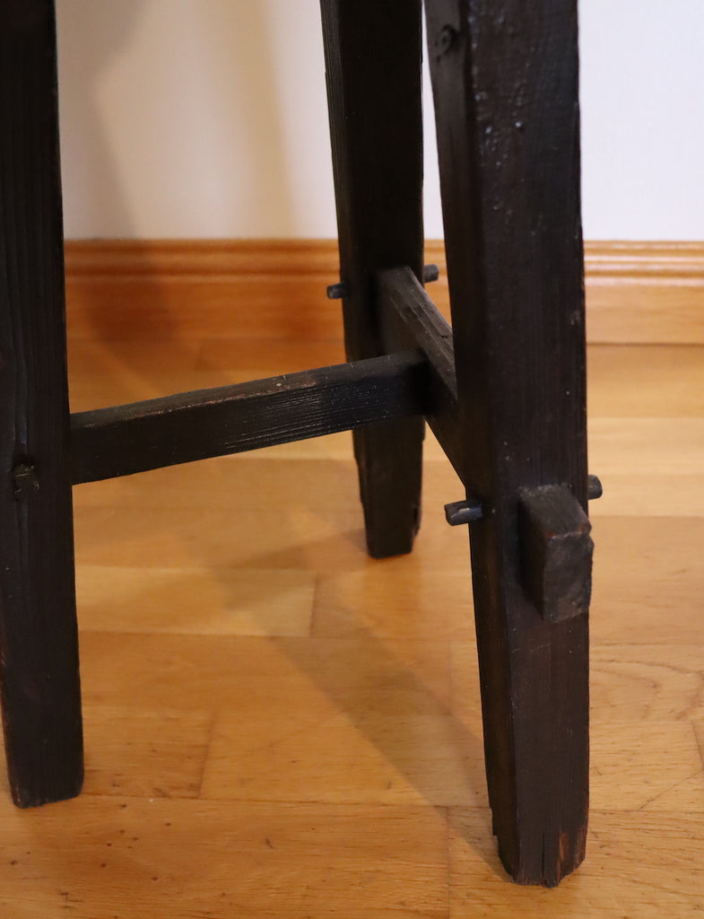 Autant on trouve assez librement des tabourets bas de leur fabrication, ou même un exemplaire seul, autant une paire d'assises hautes est une rareté. A noter qu'ils ne sont pas de mêmes hauteurs, l'un, certainement ayant vu ses pieds raccourcis pour une raison mystérieuse.