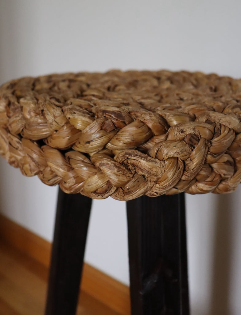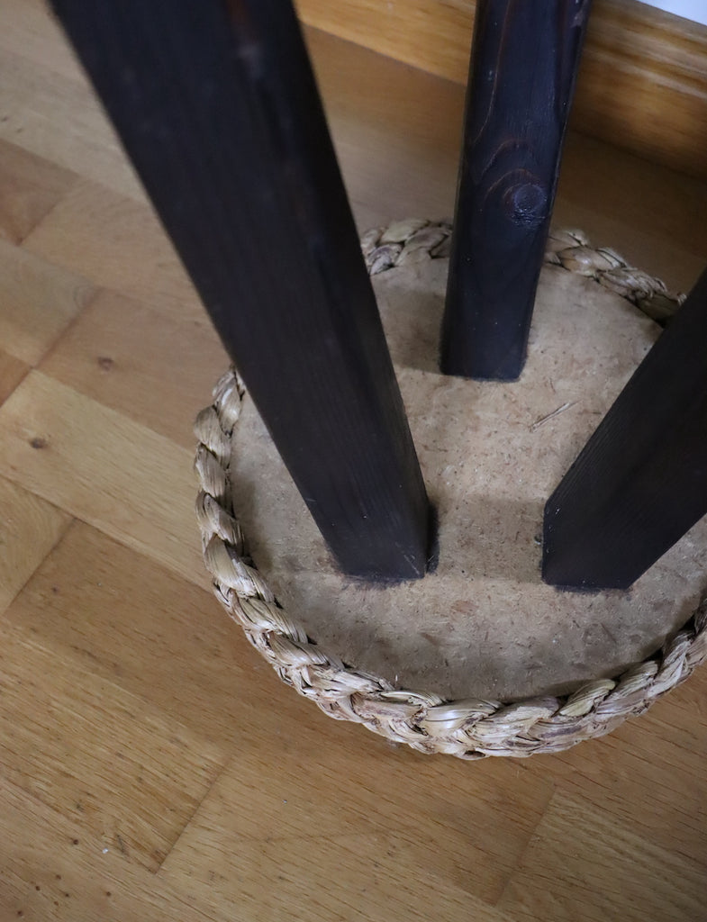 Voici une paire de jolis tabourets hauts déclarés par expertise dans le goût du couple mythique Audoux et Minet. Le bois est joliment teinté (résineux) tandis que l'assise (en jonc tressé) est dans la pure tradition des artistes, tels qu'ils en ont fait leur marque de fabrique. Même l'assemblage avec la technique du T qui permet de stabiliser la structure signe son appartenance à nos 2 artistes.