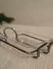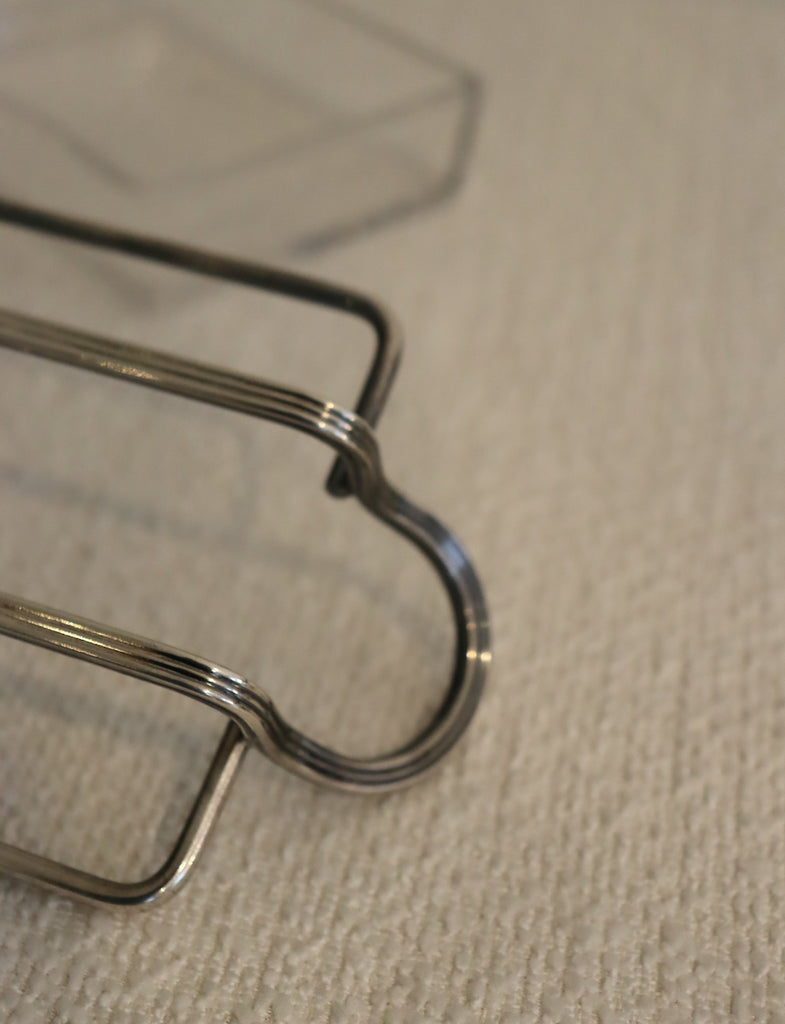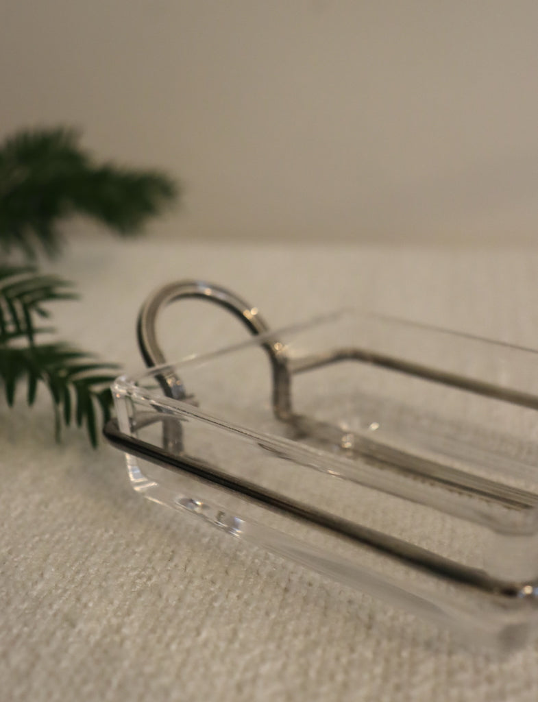 Voici un beurrier ouvert des années 50-60, dont l'originalité est de marier verre et métal argenté.